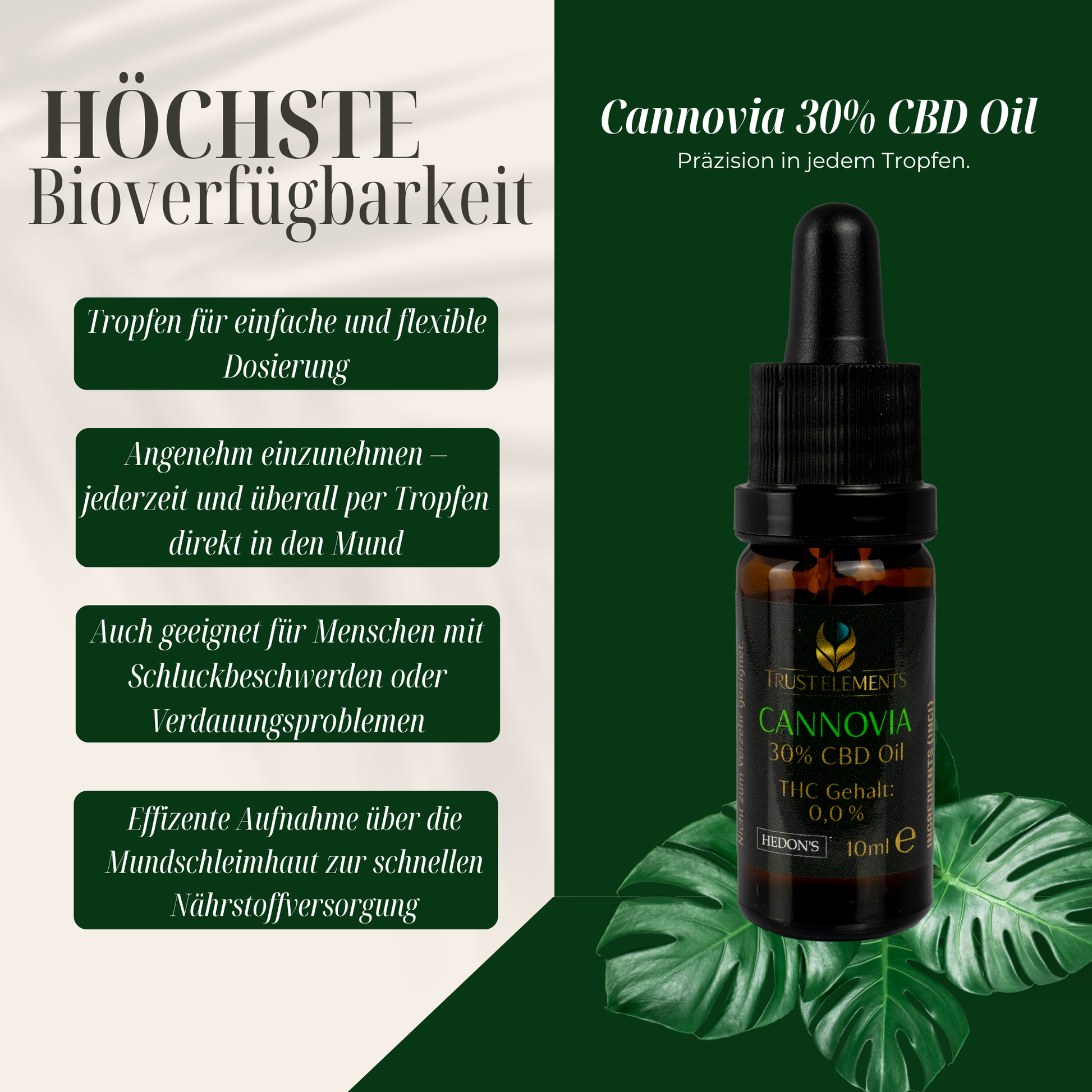 Mit 30 % hochkonzentriertem Cannabidiol (CBD), laborgeprüftem Reinheitsgrad und dokumentierter Wirkstoffstabilität steht dieses Öl für den evidenzbasierten Ansatz von Trust Elements: