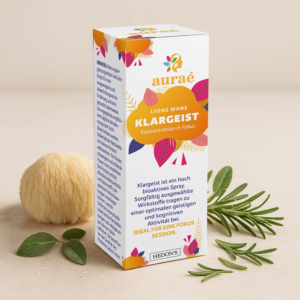 Klargeist von Aurae ist dein pflanzlicher Begleiter für Konzentration, mentale Stärke und kreative Klarheit – entwickelt für Tage, an denen du auf den Punkt funktionieren willst.