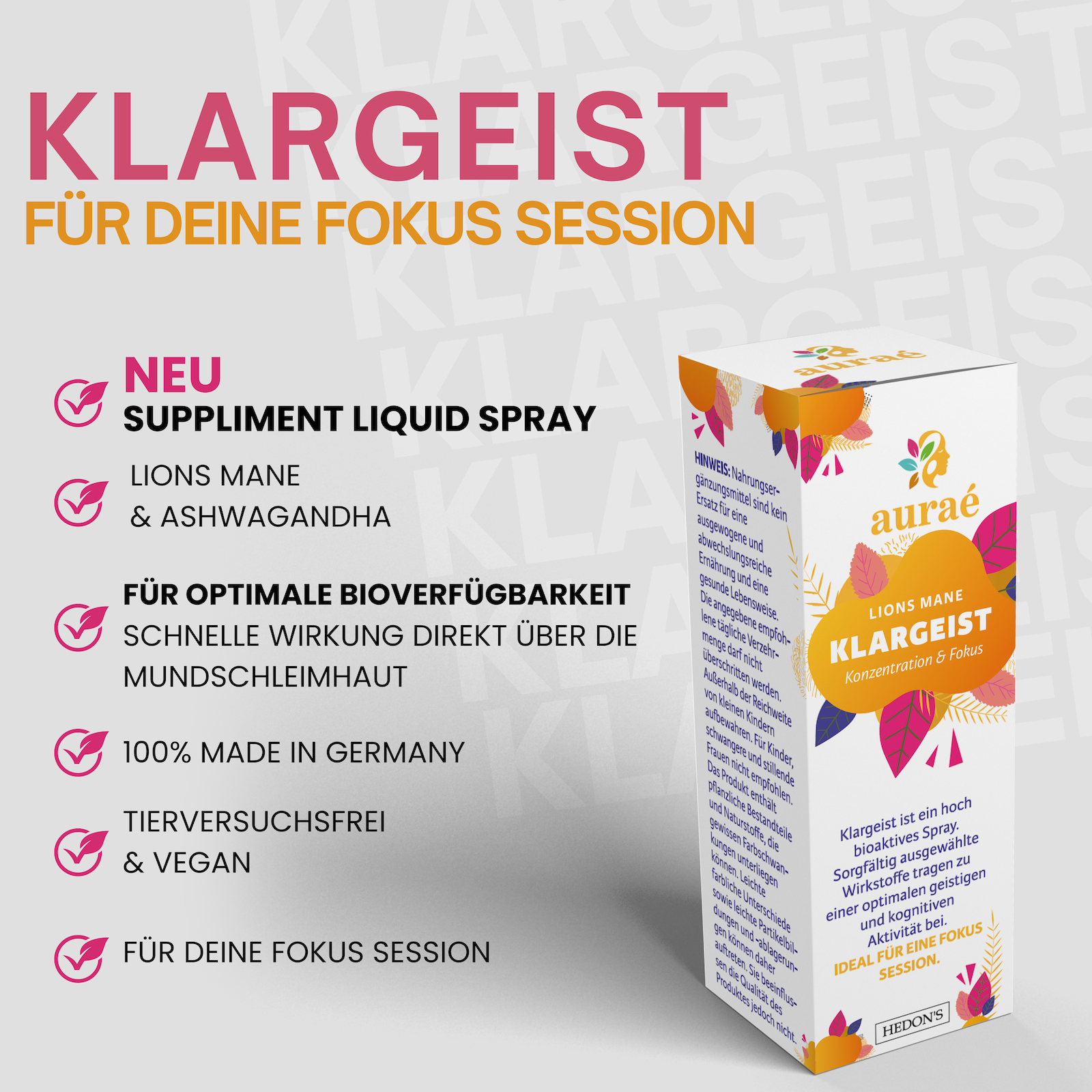 Klargeist – Pflanzliches Konzentrationsspray für Fokus & mentale Energie | Aurae