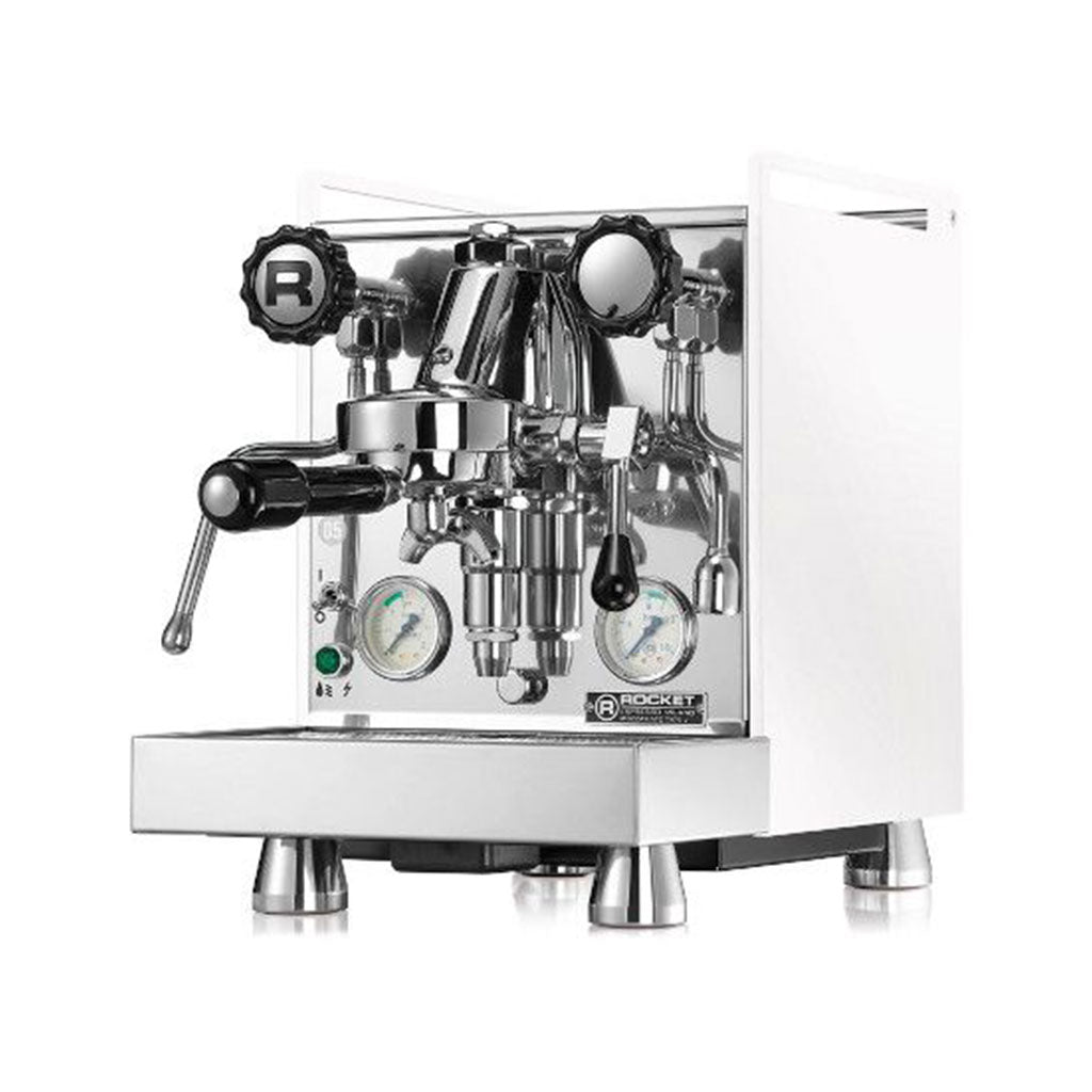 Die Mozzafiato Cronometro V Black ist eine hochwertige Siebträgermaschine für Home-Baristas und Espresso-Puristen, die volle Kontrolle über Temperatur, Druck und Extraktion wollen – klar, direkt und ohne Spielraum für Zufall. Mit stabiler Thermosyphon-Brühgruppe, durchdachter Elektronik und klassischem Profi-Aufbau liefert sie jeden Shot sauber, konstant und mit vollem Aroma.